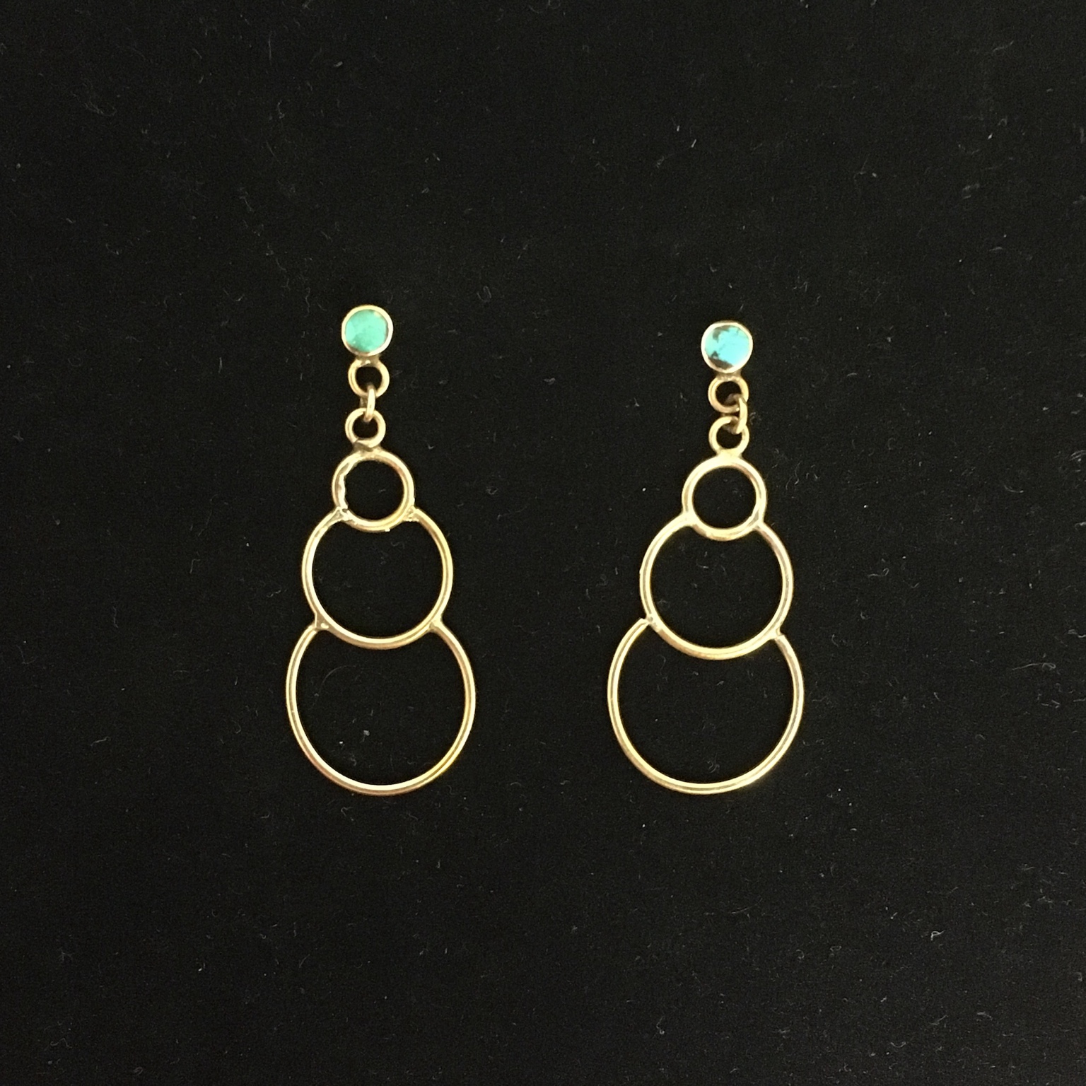 Geometric triple-loop bronze earrings with turquoise studs — a minimalist ode to celestial cycles and timeless motion.
