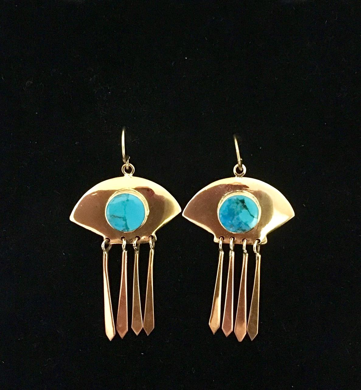 1980’s Vintage Turquoise Silver & Bronze Earrings – Egyptian Revival