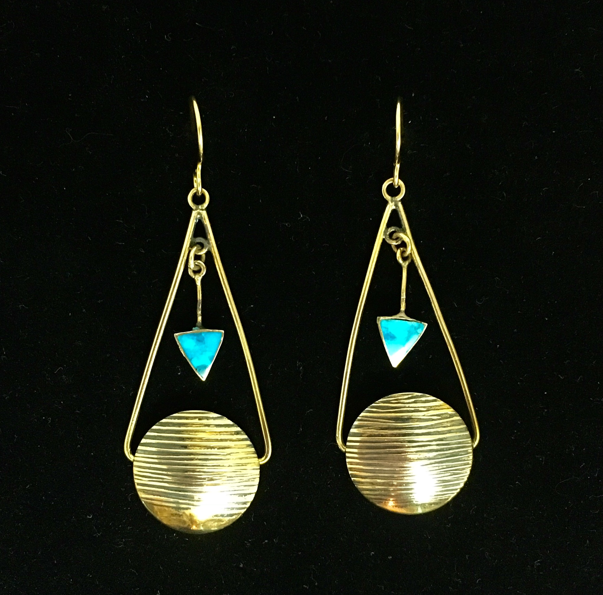 Material: Genuine Turquoise on Solid Bronze Style: Egyptian Revival, Limited Production These moon like pair of earrings are a rare treasure from the 1980s, born of the Egyptian Revival movement and crafted with enduring beauty. Each earring is fashioned from solid bronze. The design draws on the timeless geometry of the circle — a […]